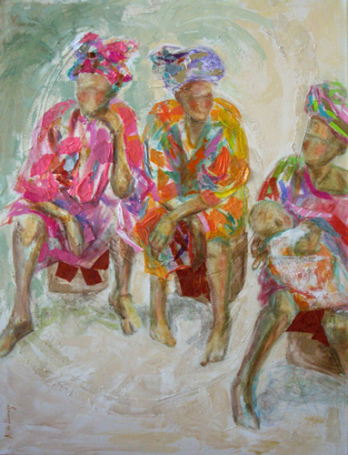 Papotages, acrylique et collages sur toile, 91 x 122 cm