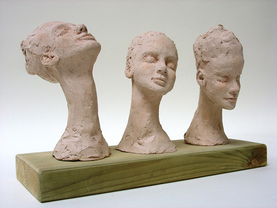 Les trois Grâces, terre cuite peinte, 45x28x16,5 cm