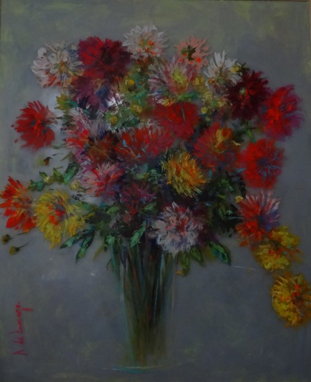 Dahlias, peinture sur plexi, 125x105 cm