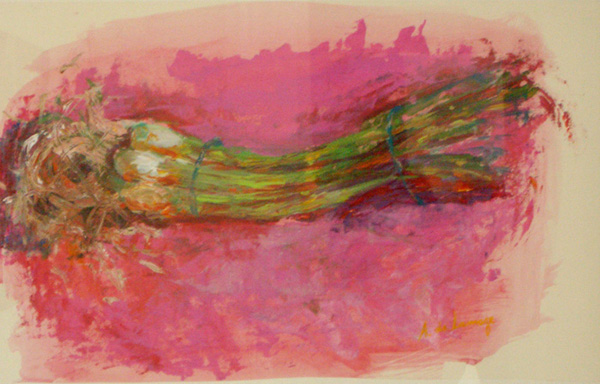Onions, huile sur papier, 69 x 46 cm