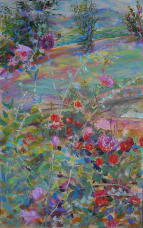 Le Potager, acrylique + huile sur toile en diptyque, 152x121 cm